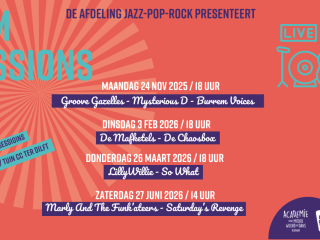Iedereen is welkom om te kijken naar onze jam sessions in de grote unit van de academie!